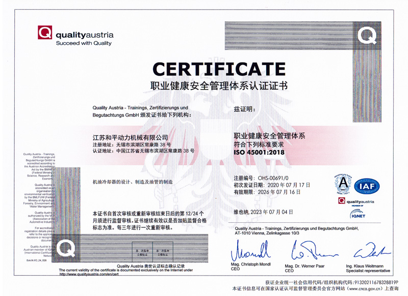 憑借領先的研發理念和先進的制造技術,和平先后參與制定了《JB/T 6003.1—2014?內燃機 機油冷卻器第1部分:板翅式機油冷卻器 技術條件》《JB/T 10505- 2016 內燃機 機油散熱器 技術條件》《JB/T 0436 - 2013 內燃機 機油冷卻濾清模塊》《JB/T 6003.3—2016 內燃機 機油冷卻器第3部分:傳熱性能試驗方法》系列國家行業標準。